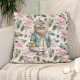 Jetez l'oreiller avec la peinture vintage d'un mignon chat grand-mère portant un tablier rose fleuri et un pull vert.