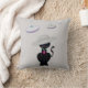 Jetez l'oreiller avec le chat noir mignon et les soucoupes volantes seulement sur le côté avant sur l'arrière - plan couleur argent.