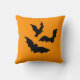 Simple trois chauves-souris de chaque côté de ce coussin orange unique pour Halloween.