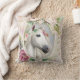 Coussin avec une illustration fantaisiste d'un cheval blanc avec une élégante couronne de fleurs.