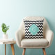 Coussin Chevron Zig-Zag Noir Blanc Monogramme Turquoise