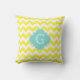 Coussin Chevron Zigzag Jaune Blanc Monogramme Quatrefeuill