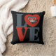 Découvrez Chibi Catwoman à l'intérieur d'un coeur rouge qui représente le "O" dans ce logo empilé "LOVE".