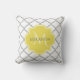 Un carré marocain chic blanc et gris quatrefoil motif jetez l'oreiller avec un badge jaune que vous pouvez personnaliser en ajoutant votre nom et monogramme initial à. Il fait partie de la collection de lime de noix de coco et de feuilles de papier de printemps Meadowlark.
