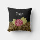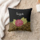 Un chic carré empreinte de léopard brun doré jette un oreiller décoré d'une élégante rose rouge. Faites de ce design poster de animal et rouge floral design spécial en ajoutant le nom de votre fille préférée.