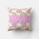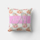 Chic et girly monogramme jetez oreiller avec des citrouilles de pêche et de rose fleurie printemps / automne et un arrière - plan blanc. Votre nom personnalisé et votre monogramme sont écrits dans un élégant script blanc et gris avec un arrière - plan rose. Vous pouvez modifier la couleur du texte, le style et la taille de police à l'aide de l'option personnaliser.