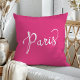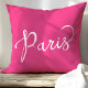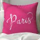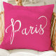 Coussin Chic Rose Chaud et Blanc Typographie Parisienne
