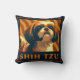 Portrait Shih Tzu de style rétro dans des tons chauds et gras, mettant en valeur le manteau fluide de la race, le museau court et les yeux sombres et âpres. Originaire d'un compagnon chéri des cours impériales chinoises, le Tzu chiite est connu pour sa nature affectueuse, son charme ludique et sa présence royale malgré sa petite taille.