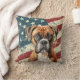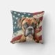 Un beau portrait aquarelle d'un majestueux Boxer Dog est placé contre un arrière - plan grunge du drapeau américain. Les deux côtés du coussin ont la même image.