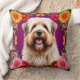 Coussin Chien mignon et duveteux avec des fleurs