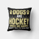 Thème de hockey Jetez l'oreiller avec le texte qui lit Chiens et Hockey Me rendre heureux Humans Make My Head Hurle! Il y a aussi des bâtons de hockey et des empreintes de pattes de chiens!