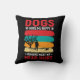 Coussin de design amoureux des chiens coloré avec rouge, blanc, bleu, jaune et crème sur un arrière - plan que vous pouvez changer à la couleur que vous voulez, dispose d'un arbre de silhouette et personne avec un chien et le texte dit Chiens Rendre Joyeux Humains Faire ma tête mal!