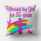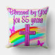 Cette dame spéciale est bénie par Dieu depuis 85 ans. Profitez de ce magnifique coussin rose arc-en-ciel, croix et papillon de 85e anniversaire de www.zazzle.com/jlpbirthday. Votre angélique de 85 ans adorera ce cadeau unique et un des 85e anniversaire customisé qu'elle chérira chaque année. Célébrez l'âge de 85 ans avec une belle prière de 85 ans. Offrez le cadeau d'un design original de 85e anniversaire pour se réjouir d'avoir atteint 85 ans.