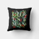 Le mot CHRISTMAS se trouve parmi les feuilles et les baies sur un arrière - plan noir (ou toute couleur) sur ce jour de vacances jetez un oreiller disponible en plusieurs tailles et styles. CORRESPONDANCE d'objets dans notre collection.