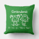 Christmas Love You Grandma Fun Graphic Gift loose Throw Pillow - A cheerful pillow Grandma will love to display on her couch, bed or favorite chair. Personalize her nickname — Grandma, Nana, Mimi, Gran or your own favorite nickname. In Christmas green it is a perfect reminder of love from her grandchildren. The design features cute boy and girl stick-figure characters with arms stretched wide, drawn in a fun whimsical style with simple childlike typography. A clean, bold black-and-white graphic that feels like a child’s own art — sweet, cheerful and full of love.