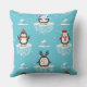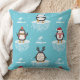 Add a splash of holiday cheer with this playful Christmas pillow featuring cartoon penguins dressed in scarves, hats, and antlers, each perched on floating icebergs. Set against a snowy blue backdrop with distant mountains, this repeating pattern brings winter whimsy to any space. Perfect for cozy seasonal decor, kids’ rooms, or as a charming holiday gift, this pillow blends fun, warmth, and festive flair.