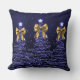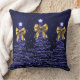 Coussin Christmas Sparkling Trees Navy Faux Gold Bow