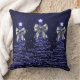 Coussin Christmas Sparkling Trees Navy Faux Silver Bow