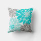 Coussin Chrysanthèmes turquoise et gris Motif floral
