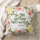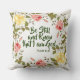 Beau coussin floral de guirlande de roses roses et jaunes avec la citation d'écriture sainte qui peut être modifiée.