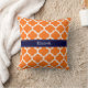 Motif de treillis marocain à quatre feuilles orange et blanc citrouille, étiquette de monogramme avec ruban bleu marine