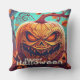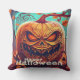 Coussin Citrouille orange effrayant avec visage, Halloween