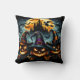 Coussin Citrouilles d'Halloween et sorcières au crépuscule