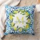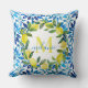 Coussin Citrus côtier et carreaux bleus Nom personnalisé M