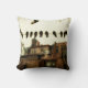 La scène urbaine avec des oiseaux et des maisons dans la ville ferait un joli coussin de décoration industrielle ou urbaine.