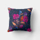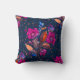 Magnifique Design Floral coussin moderne pour donner à votre espace une mise à jour à tout moment ! Ajoutez du raffinement et de l'art à votre maison, à votre bureau ou à votre patio avec ce design d'une aquarelle originale sur papier. L'arrière - plan profond bleu présente des fleurs éparpillées sur bleu nuit. Fuchsia, or, brun et bleu floral. Super idée cadeau !