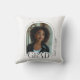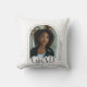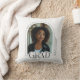 Un coussin moderne de remise de diplômes qui présente la photo du diplômé recadrée à une élégante arche avec typographie GRAD légèrement sur la photo. Dans l'arc est le texte de classe année. Sur le côté, verticalement, se trouve le nom et l'école du diplômé. Design classique noir et blanc. © Kimbellished, LLC