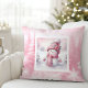 Coussin Classic Pink Snowman Winter Scene Kids Gift Pillow