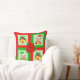 Coussin Cloches de Noël, poinsettia, elfe sur vert & rouge