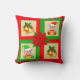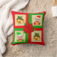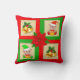 Coussin Cloches de Noël, poinsettia, elfe sur vert & rouge