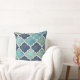 A seamless geometric pattern throw pillow inspired by classic Mediterranean and Moroccan tilework. This design features elegant quatrefoil shapes in rich shades of cobalt blue, teal, and aqua, accented with light cream outlines and subtle marbled textures. The combination of deep ocean hues and cracked-stone details creates a timeless yet modern aesthetic. Perfect for those who love artistic geometry, coastal tones, and refined tile-inspired artistry that evokes both tradition and contemporary design.
