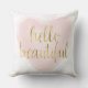 Coussin Coeur rose d'aquarelle d'or bonjour beau