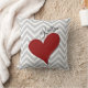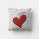 Coussin Coeur rouge sur l'oreiller à lancer rayé gris Chev