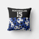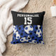Coussin Collage de balle de soccer bleu foncé | Nom et num