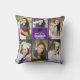 Ce coussin de collage photo moderne violet de troisième cycle présente vos 6 photos préférées d'étudiants. Ce cadeau de remise de diplômes tient compte de la typographie blanche et classe de votre nom de lycée ou de collège pour la classe de 2025. Customisez ce décor de chambre mignon avec votre année de graduation sous la casquette noire grad.