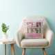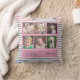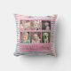 Cet oreiller de jetée est un beau cadeau spécial de conservation pour une grand-mère. Il dispose d'un collage de 6 cadres photo pour des photos de ses petits-enfants. La coussin est agrémentée d'un arrière - plan rayé rose & bleu aquarelle. Texte personnalisé : Bénédictions de grand-mère
