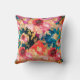 Collage Floral Jewel Toned. Jetez Oreiller Marché Parisien. Fleurs roses étonnantes avec des gouttes d'eau profondes, bleu aqua, orange rouillé et violet. Une pièce romantique et spectaculaire pour votre décor maison.