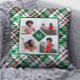 Beau coussin plaid vert, rouge et blanc avec un collier de quatre photos et un monogramme central. Magasinez cette collection de Noël pour coordonner les cartes de voeux et la décoration saisonnière !