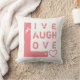Un valentin moderne mais chic lance l'oreiller avec une citation disant "live laugh love". Vous pouvez placer vos photos et votre nom à l'arrière pour un look plus personnalisé.