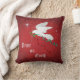Versier je huis met dit prachtige "One of a Kind" Kerst Sierkussen! Een serene witte duif die tussen de sterren vliegt met een olijftak met vloeiende rode en groene linten...iedereen toewenst...."vrede op aarde"! Dit is een origineel kunstontwerp van kunstenaar Kerry Miller."