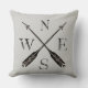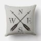 Coussin de Compass rustique et simple avec lettres et flèches usées en noir sur arrière - plan gris clair. Le design est imprimé à l'avant et à l'arrière. Recherchez cette conception sur d'autres produits aussi de Simple Living.
