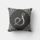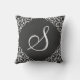 Cette belle conception offre un tissu gris-foncé avec des conceptions blanches élégantes des deux côtés. Elle comporte également un beau monogramme cursif d'une initiale de votre choix. Ceci semblerait parfait sur votre divan ou enfoncerait et ferait un excellent cadeau, particulièrement pour un cadeau de pendaison de crémaillère ou de mariage.