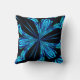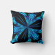 Un coussin noir et bleu impressionnant de conception de comète. Il semble futuriste.