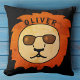 Cool Lion Head Orange Black Kid`s Nom Coussin. Lion cool avec lunettes de soleil sur un arrière - plan noir. Ajoutez votre nom ou effacez-le.