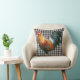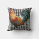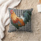 "Oreillers à lancer noir et blanc rustique de coq de ferme". Le style rustique de la ferme rustique avec une touche chaleureuse et accueillante ! L'oeuvre peinte en huile pastel d'un coq rouge bleu or noir et blanc a une qualité rêvée et a été posée sur un motif de contrôle blanc et noir texturé brut en vichy. Cette oeuvre a été créée par Audrey Jeanne Roberts, artiste reconnue et reconnue internationalement, et protégée par le droit d'auteur.