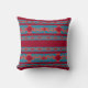 Coussin Corail bleu sur Motif symétrique rouge foncé
